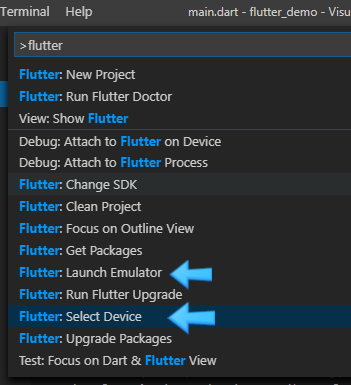 Search for "flutter" in the Command Palette