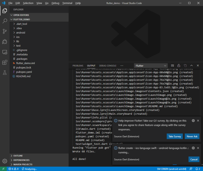 First, enter "flutter_demo" and press Enter!