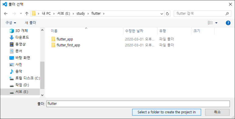 Create Flutter project in VSCodeFlutter/mobile 2020. 5. 12. 15:17